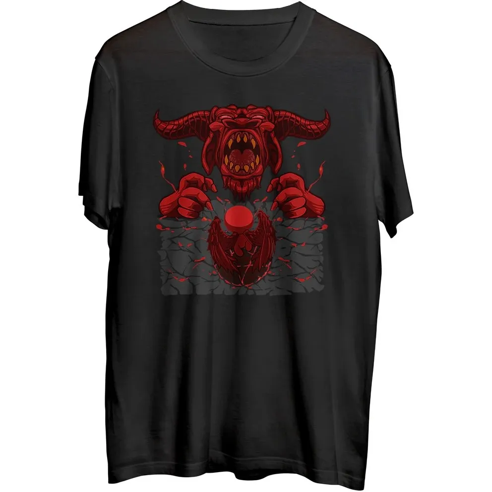 Show your allegiance to Isaac (or to his unholy opponent) with this striking blood-red design emblazoned on your torso. You'll have a lotta laffs explaining the context to your school's guidance counselor!