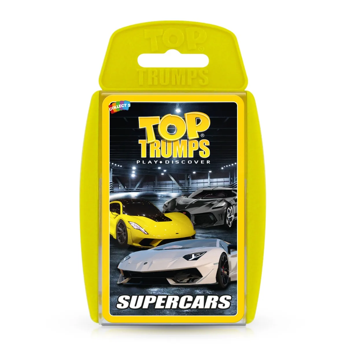 Strap yourself in and put your foot on the gas - it’s time to take to the racetracks with this extraordinary new edition of Top Trumps: Supercars! Get to grips with 30 of the world’s fiercest, fastest and most powerful vehicles as you race for the title of Top Trump. Pick from iconic cars including the 2018 Aston Martin DBS Superleggera, the 2018 McLaren Senna, the 2019 Bugatti Chiron and the 2013 Porsche 918 Spyder. Discover each car’s power, top speed, acceleration speed and total produced as you battle it out to pick your best stat from each card and defeat your opponents. Each card comes with high quality imagery and a custom bio that tells you everything you need to know about these incredible feats of engineering: find out which car uses separate electric motors for each wheel, which debuted as the MotoGP Austrian Grand Prix safety car, and which car offers a steampunk interior! Time to start your engines and compete for first place, with Top Trumps: Supercars.