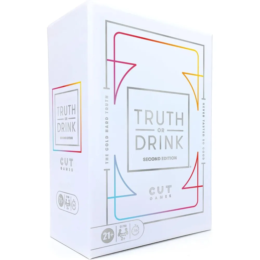 Based on the hit video series, the Truth or Drink game is the card game of honesty and hydration. Test your friends’ and family’s abilities to confront the cold, hard truth. No topic is off-limits, and there’s nowhere to hide. Will you spill the truth or take a sip? With over 2 billion views on YouTube and countless viral clips on TikTok, the Truth or Drink game is sure to make some memorable stories at your next get-together. Includes 410 question cards, 16 Buy a Round cards, and 6 customizable cards. Alcohol consumption is not required to play this game. Cut card games are hysterical adult party games for game night, and NSFW games make great gifts for adults ages 21 and up. For more daring fun, look for the Truth or Fear game.