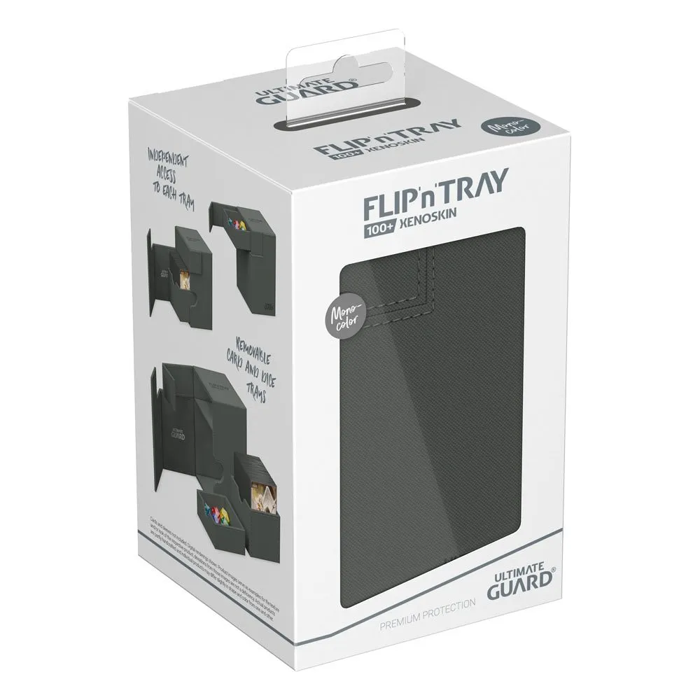 The quintessential Ultimate Guard deck box: a timeless monocolored design with strong magnetic closure, card and dice trays for safe storage of your deck, and a resistant but smooth Xenoskin surface. Looking for additional safety? With room for 100 double-sleeved or 120 single-sleeved cards in standard size, the Flip'n'Tray 100+ has it all.