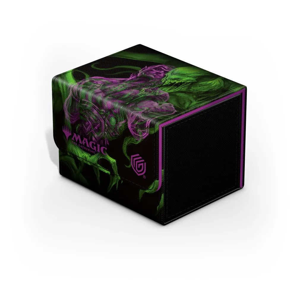 Ultimate Guard's Sidewinder 100+ Xenoskin are printed in full color with officially licensed Magic: The Gathering artwork. The deck boxes are made of durable Xenoskin material and have a high-quality microfiber inner lining. The sidewinders offer space for 100 double-sleeved or 120 single-sleeved cards – and are a perfect match for the Omnihive 1000+ Xenoskin from the Duskmourn series!