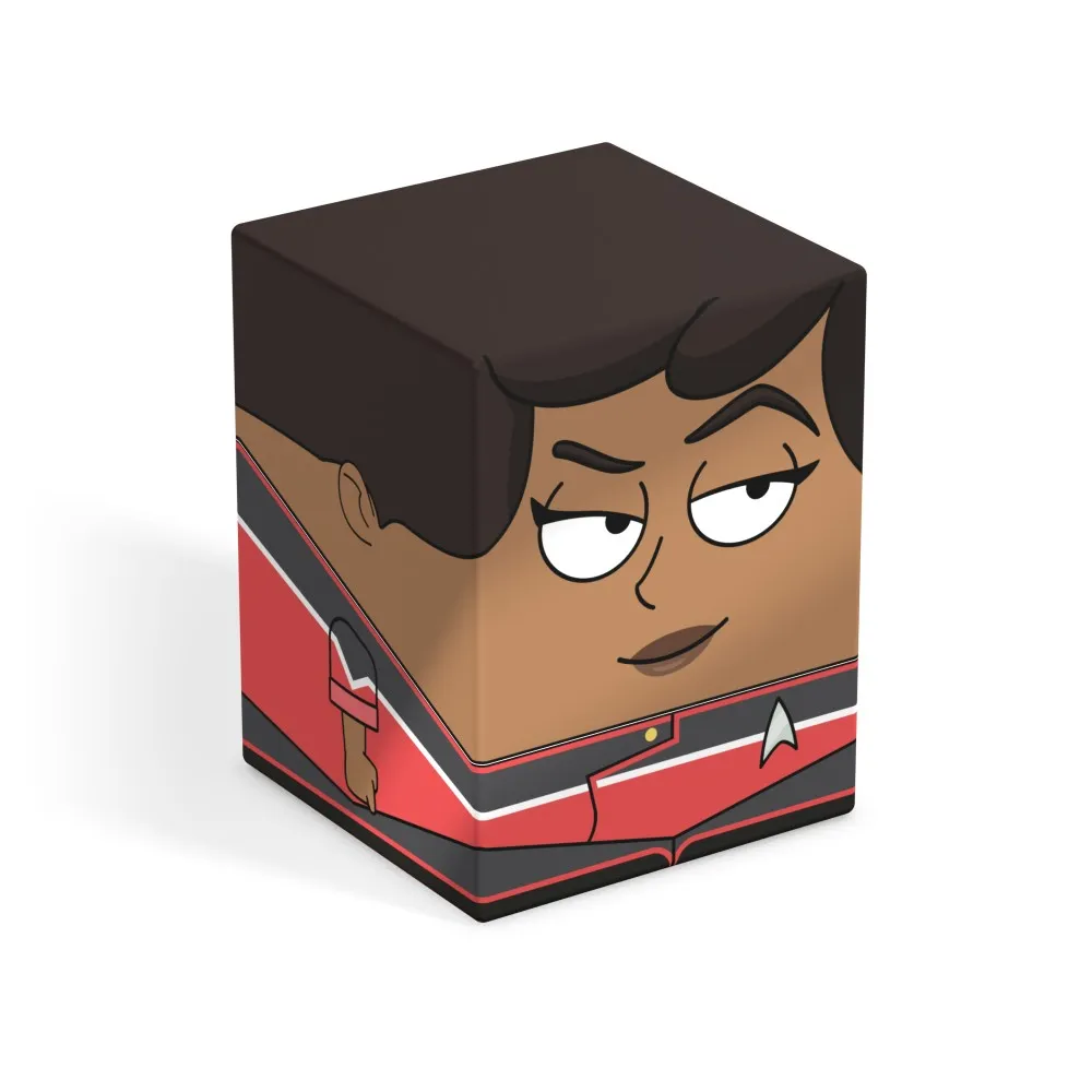 Collectible box for storing TCG decks, tabletop gaming accessories, and/or collectibles. The Beckett Mariner Squaroe from the Star Trek: Lower Decks™ edition holds up to 100 cards in double protective sleeves if used as a deck box. Squaroes are made from 78% renewable resources and fit perfectly into the separately available Collectors Case.