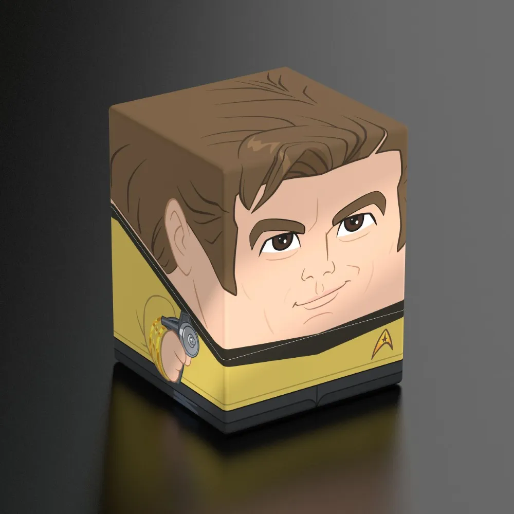 Collectible box for storing TCG decks, tabletop gaming accessories, and/or collectibles. The Captain Kirk Squaroe from the Star Trek: The Original Series edition holds up to 100 cards in double protective sleeves if used as a deck box. Squaroes are made from 78% renewable resources and fit perfectly into the separately available Collectors Case (available here).
