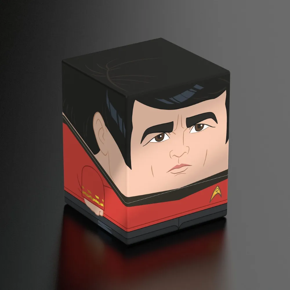 Collectible box for storing TCG decks, tabletop gaming accessories, and/or collectibles. The Scotty Squaroe from the Star Trek: The Original Series edition holds up to 100 cards in double protective sleeves if used as a deck box. Squaroes are made from 78% renewable resources and fit perfectly into the separately available Collectors Case (available here).