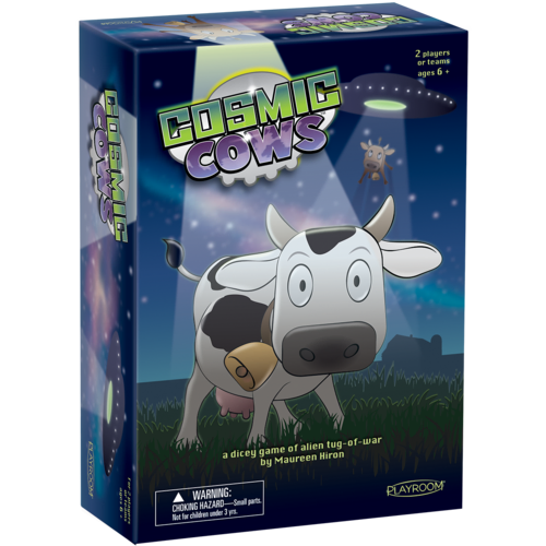 The number combinations that are rolled determine the movement of the cows, and each player can choose which tractor beam to use in order to abduct them. With a good mix of strategic offensive and defensive maneuvers, decide which combination of the unknowing bovines to pull toward your spaceship or away from opponent's!