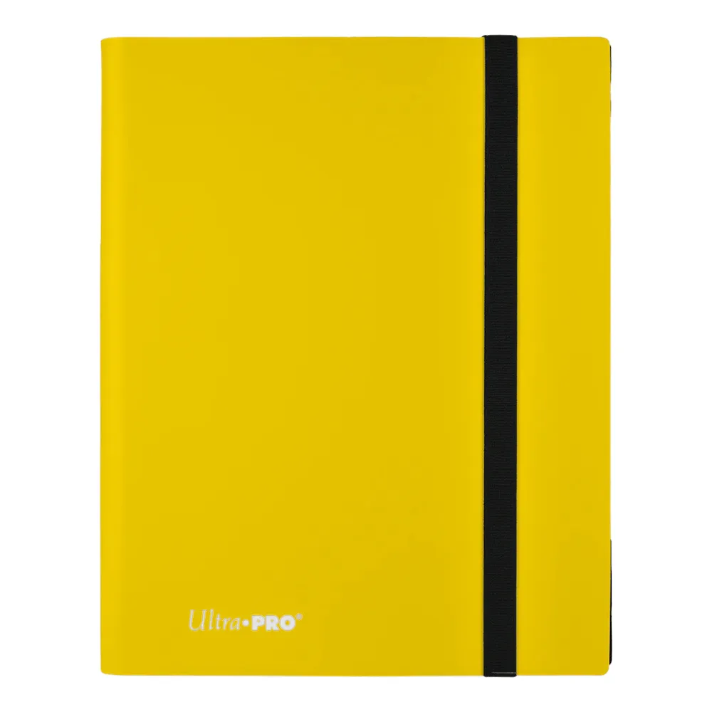 Sideloading pocket design to prevent cards from easily falling out. Elastic strap holds the binder shut when not in use. All materials are made from archival-safe, acid-free non-PVC material. Holds 360 cards in Ultra PRO Deck Protector sleeves.