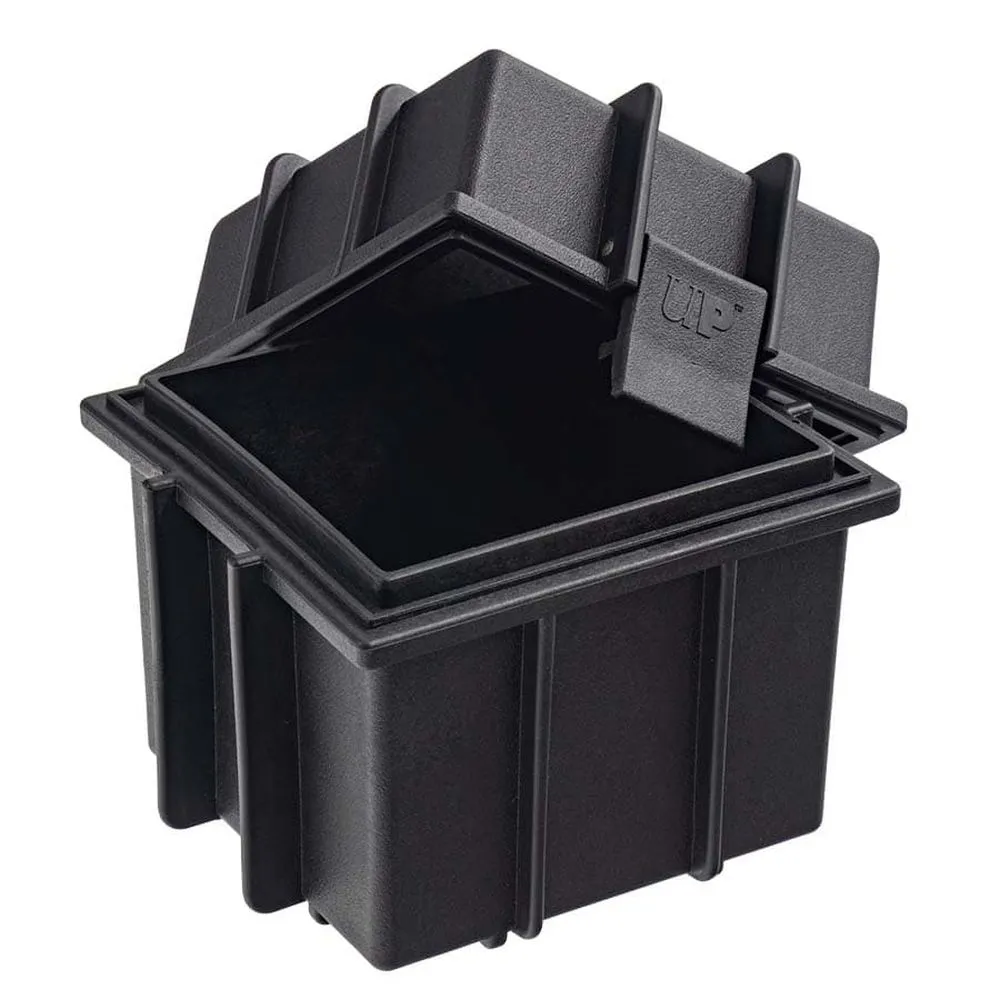 The stackable, waterproof-watertight Black Box„¢ Deck Box® card storage container features easy open and close sealed latches in a Pelican-style texture. Made with 20% Fiberglass to provide a significant increase in tensile and impact strength. Moisture-proof and pressure-proof. Sized for standard size trading cards.