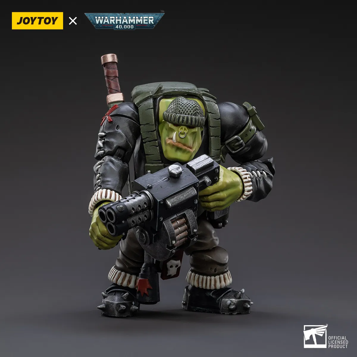 No right-thinking Ork trusts Kommandos. They sneak up on the enemy rather than charging in headlong, and have an unhealthy fascination with very big knives and their application to people's backs, throats and guts. That said, having a band of Kommandos ambush the enemy mid-battle definitely has its uses! Joy Toy brings the Ork Kommandos from Warhammer 40k to life with this new series of 1/18 scale figures. Each figure includes interchangable hands and weapon accessories and stands about 5" tall.