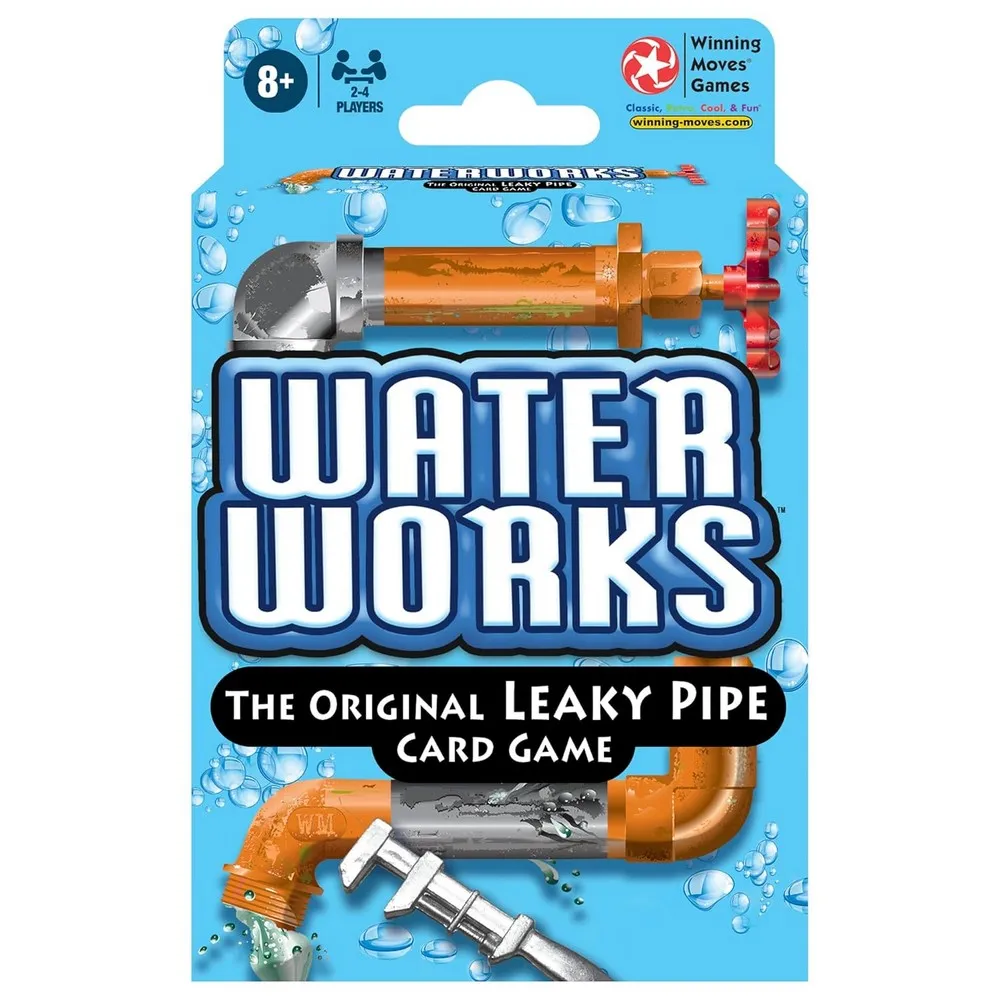 Revisit the excitement of the 1970s with the Waterworks Classic Card Game by Winning Moves, a thrilling game of strategy and luck designed for 2-4 players. This engaging game challenges players to construct a seamless pipeline from valve to spout using a variety of pipe cards. Watch out for sabotage from opponents who may slip leaky pipes into your masterpiece, and be ready to make quick repairs with handy wrench cards. Ideal for family game nights and gatherings with friends, Waterworks promises hours of competitive fun.